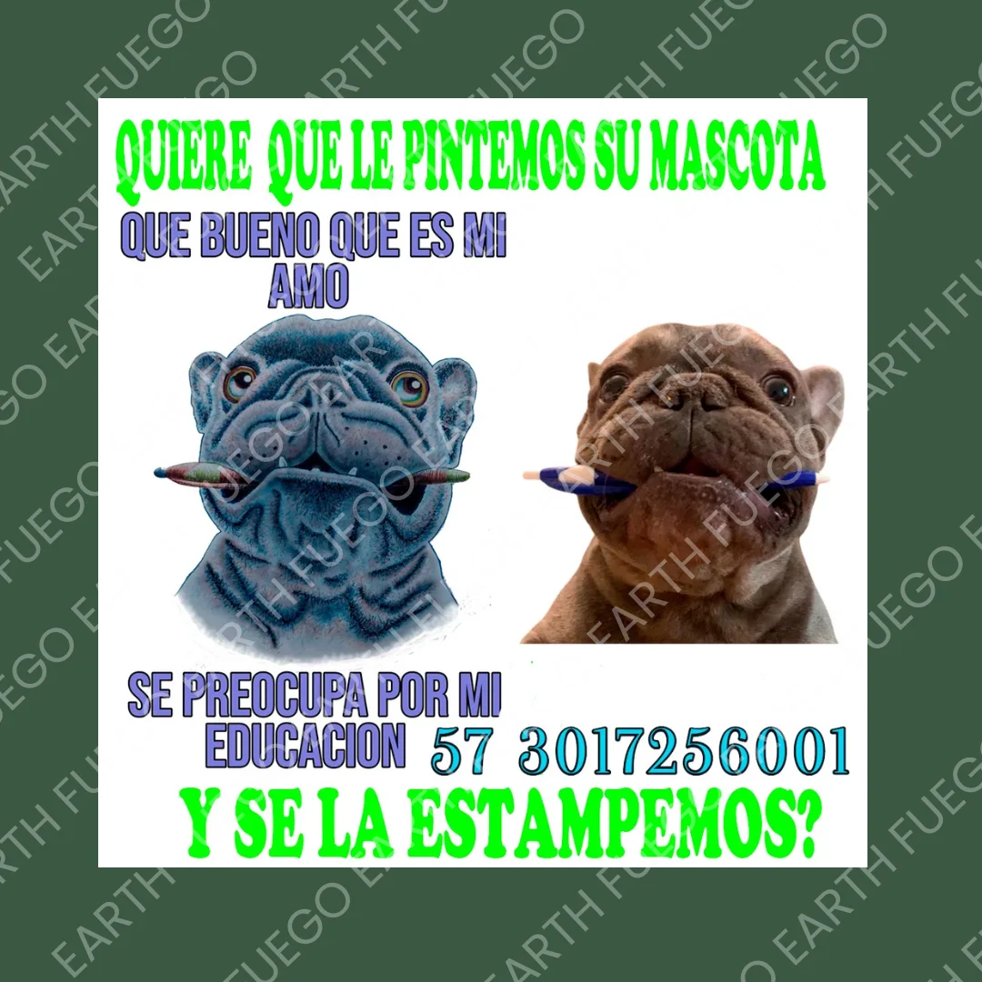 En esta obra se muestra el contraste entre la fotografía original del bulldog y su versión ilustrada, demostrando cómo el arte puede capturar la esencia, expresión y carácter de tu mascota. El detalle del perro sosteniendo un lápiz aporta un toque creativo y divertido que simboliza el proceso artístico detrás de cada retrato.